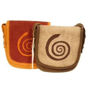 Diese prächtige Filztasche wird in aufwändiger Handarbeit in einem Dorf in Nepal hergestellt.