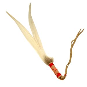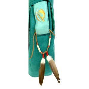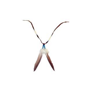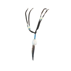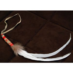 Federn vom Hahn oder von Ente sind liebevoll mit Schnur, Perlen und Leder zu einem schönen kleinen Bündel gebunden.